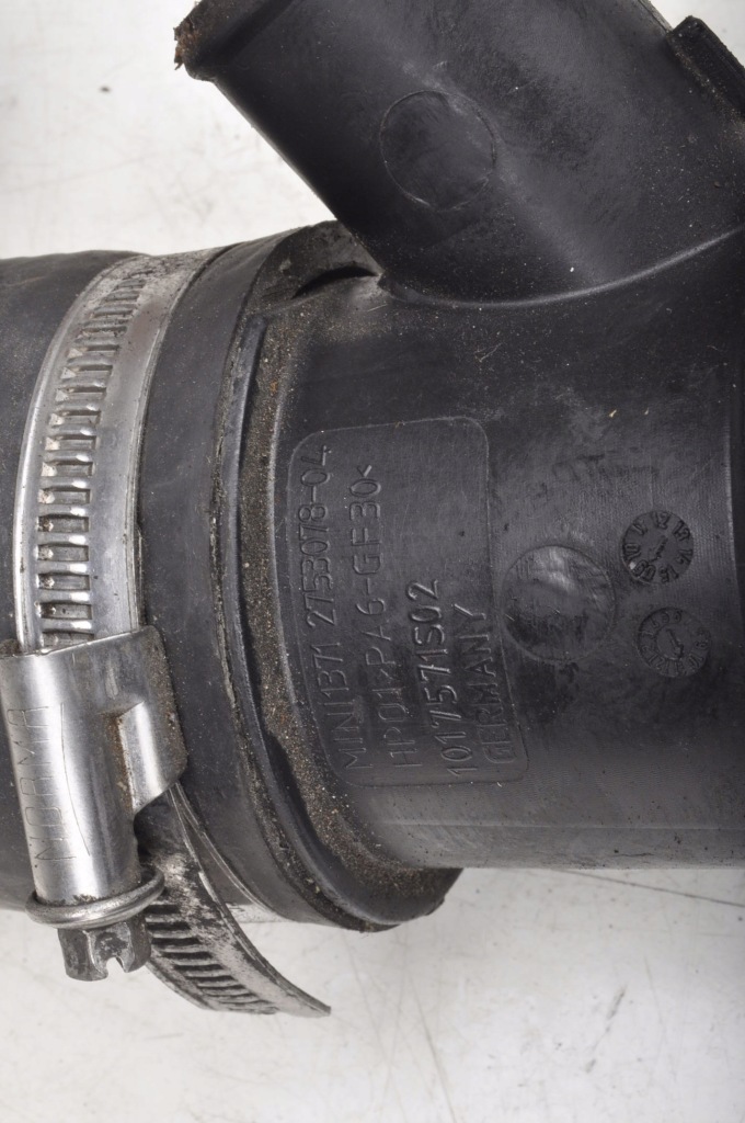 NAME AIR INTAKE PIPE FACTORY NUMBER 2753078-04 BRAND MINI MODEL R50 R53 ENGINE COOPER S 1.6 16V 163KM BODY NUMBER OF DOORS SUBMODE ENGINE CAPACITY 0.0 GEARBOX TYPE FUEL TYPE Petrol ENGINE CODE YEAR OF PRODUCTION L PRODUCTION ATA 2002/03 - 2006/09 COLOR CODE COLOR PART ID: ID: 267291